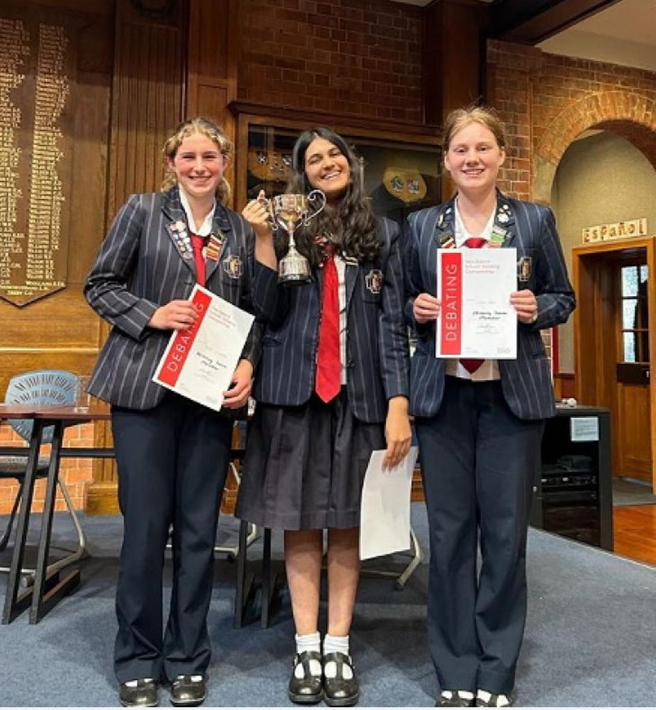 It was a fantastic final with extremely sophisticated argumentation from both teams. Palmerston North Girls’ took out the trophy with the team of Hallie Williamson, Parnika Rao and Esther Steer.